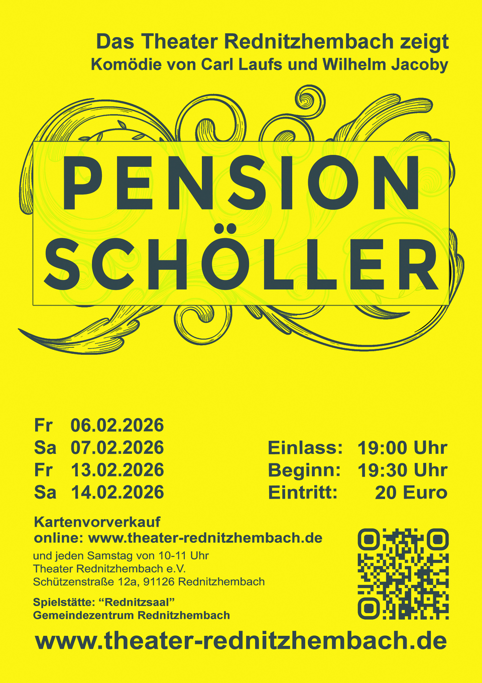 und Samstags von 10 Uhr bis 11 Uhr an der Vorverkaufsstelle im Theater Rednitzhembach, Schützenstraße, 12 A